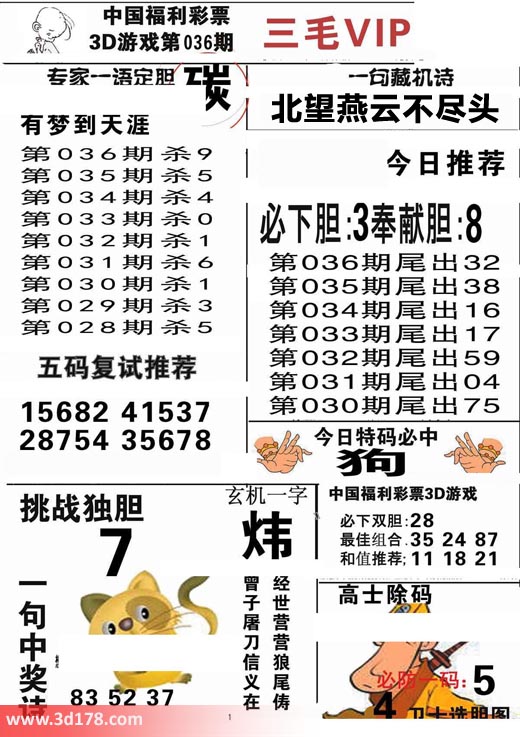 3d第2018036期三毛VIP详解: