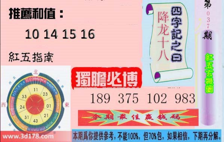 福彩3d第2018037期红五玄机图详细内容: