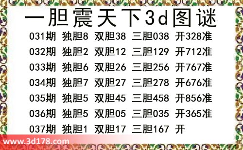 一胆震天下三胆图库由3d之家3d图库频道原创,仅供彩民参考,温馨提供。