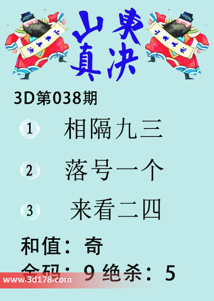 福彩3d第18038期山东真诀图如下所示: