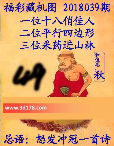 福彩3d第2018039期正版藏机图详解:3d之家3d藏机图第18039期本期为您详细解答:一位十八俏佳人二位平行四边形三位采药进山林和尾:秋忌语:怒发冲冠一首诗3d正版藏机图由3d之家3d图库频道原创,仅供彩民参究底考,温馨提供。