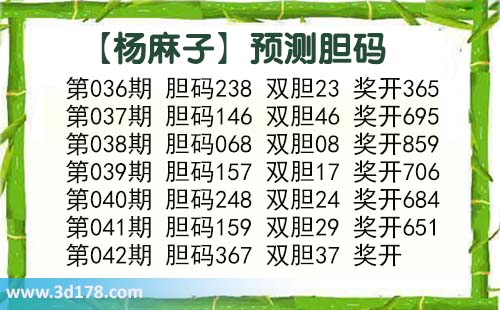 3d第2018042期杨麻子胆码推荐: