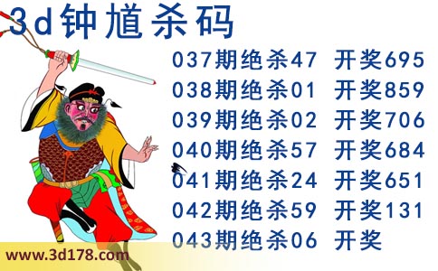 近期3d钟馗杀码的杀号详细如下: