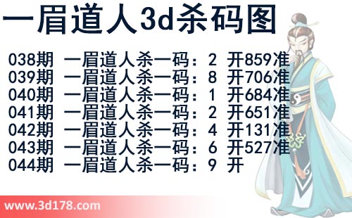 该一眉道人3d杀码图由3d之家3d图库频道原创,仅供彩民参考,温馨提供。