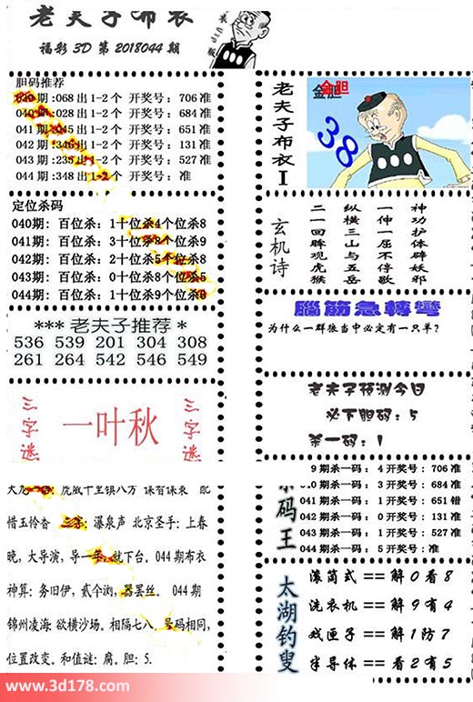 福彩3d第2018044期老夫子布衣图详情: