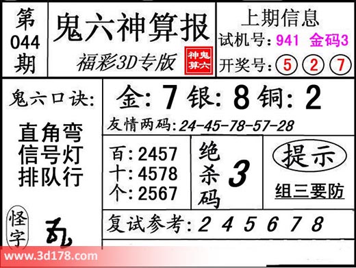 3d第18044期鬼六神算报为您推荐鬼六口诀: