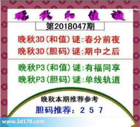 晚秋3D(和值)谜:春分前夜