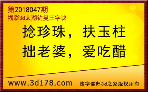 3d第18047期太湖字谜:捻珍珠,扶玉柱,拙老婆,爱吃醋