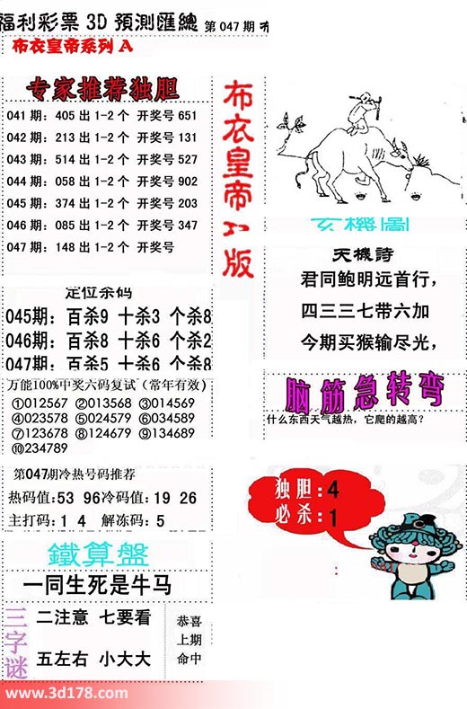 福彩3d第2018047期布衣皇帝A版布衣专家独家推荐: