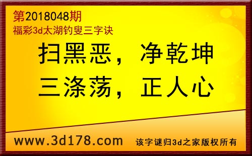 3d第18048期太湖字谜:扫黑恶,净乾坤,三涤荡,正人心