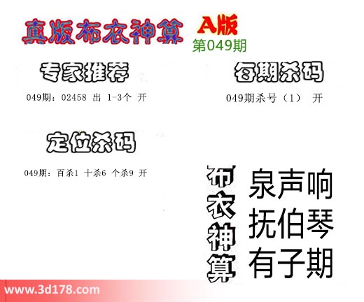 049期布衣神算:泉声响,抚伯琴,有子期