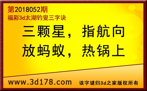 3d第18052期太湖字谜:三颗星,指航向,放蚂蚁,热锅上