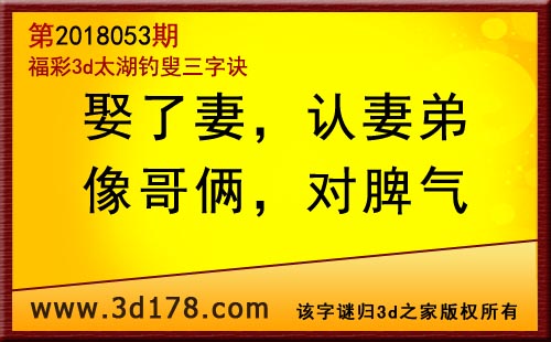 3d第18053期太湖字谜:娶了妻,认妻弟,像哥俩,对脾气