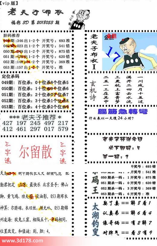 福彩3d第2018053期老夫子布衣图详情: