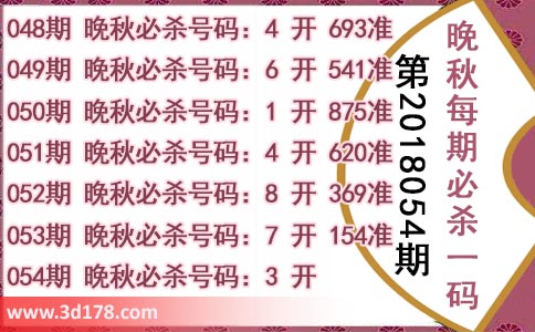 054期 晚秋必杀号码:3 开