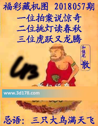 福彩3d第2018057期正版藏机图详解:3d之家3d藏机图第18057期本期为您详细解答:一位拍案说惊奇二位挑灯读春秋三位虎跃又龙腾和尾:散忌语:三只大鸟满天飞3d正版藏机图由3d之家3d图库频道原创,仅供彩民参究底考,温馨提供。