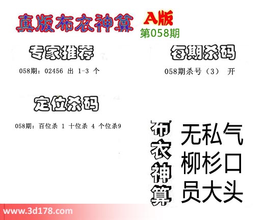 3d之家布衣图库之布衣神算图第2018058期详解: