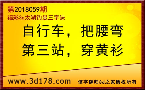3d第18059期太湖字谜:自行车,把腰弯,第三站,穿黄衫
