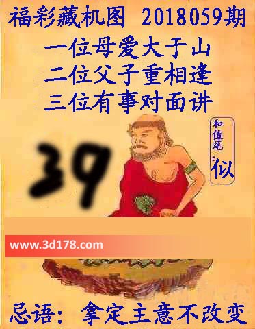 福彩3d第2018059期正版藏机图详解:3d之家3d藏机图第18059期本期为您详细解答:一位母爱大于山二位父子重相逢三位有事对面讲和尾:似忌语:拿定主意不改变3d正版藏机图由3d之家3d图库频道原创,仅供彩民参究底考,温馨提供。