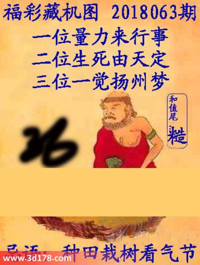 3d之家3d藏机图第18063期本期为您详细解答:一位量力来行事二位生死由天定三位一觉扬州梦和尾:糙忌语:种田栽树看气节3d正版藏机图由3d之家3d图库频道原创,仅供彩民参究底考,温馨提供。