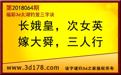 3d第18064期太湖字谜:长娥皇,次女英,嫁大舜,三人行