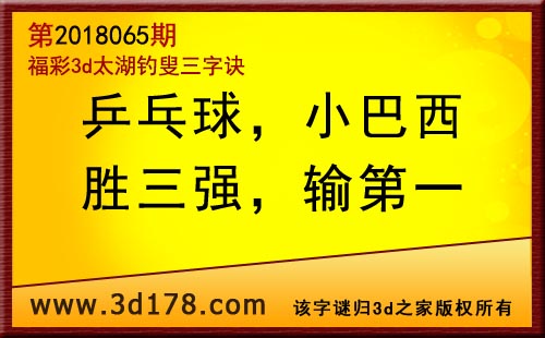 3d第18065期太湖字谜:乒乓球,小巴西,胜三强,输第一