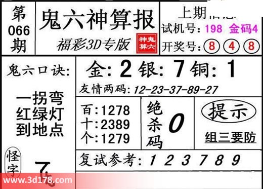 3d第18066期鬼六神算报为您推荐鬼六口诀: