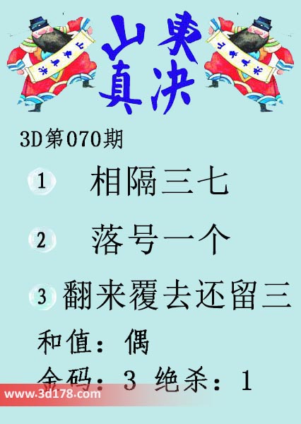 福彩3d第18070期山东真诀图如下所示: