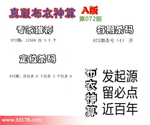 3d之家布衣图库之布衣神算图第2018072期详解: