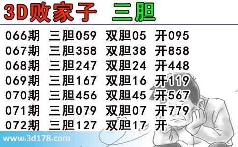 3d第2018072期败家子胆码推荐: