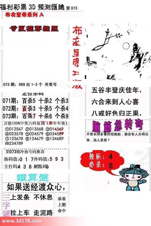福彩3d第2018073期布衣皇帝A版布衣专家独家推荐: