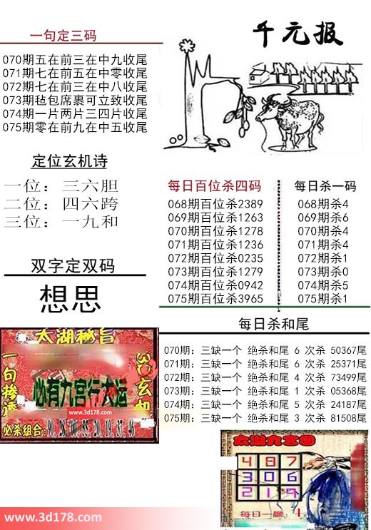 福彩3d布衣图库布衣千元报第2018075期定位玄机诗: