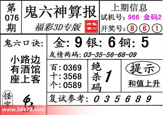 3d第18076期鬼六神算报为您推荐鬼六口诀: