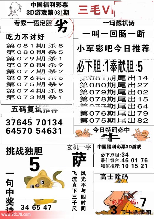 3d第2018081期三毛VIP详解: