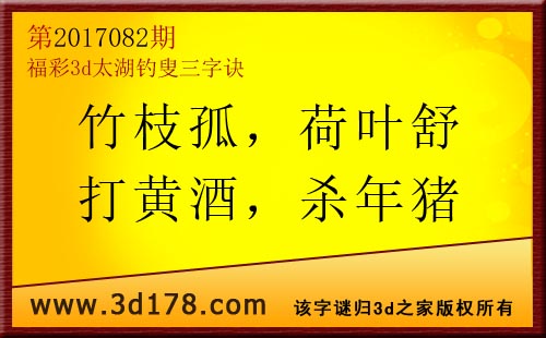 3d第18082期太湖字谜:竹枝孤,荷叶舒,打黄酒,杀年猪
