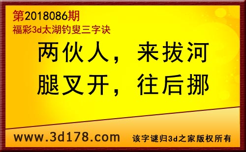 3d第18086期太湖字谜:两伙人,来拔河,腿叉开,往后挪
