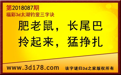 3d第18087期太湖字谜:肥老鼠,长尾巴,拎起来,猛挣扎