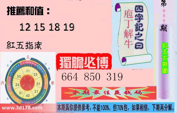 第18088期3d红五图为您推荐:福彩3d第2018088期红五玄机图详细内容:推荐和值:12 15 18 19独胆必博:664 850 319四字记之曰:庖丁解牛该红五图库由3d之家3d图库频道原创,仅供彩民参考,温馨提供。