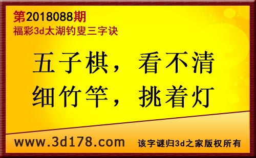 3d第18088期太湖字谜:五子棋,看不清,细竹竿,挑着灯