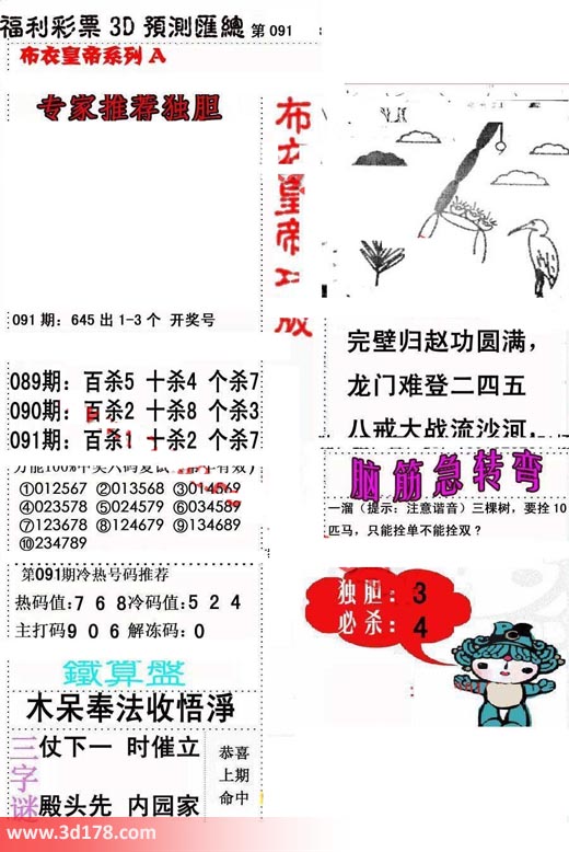 福彩3d第2018091期布衣皇帝A版布衣专家独家推荐: