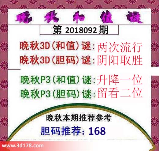 晚秋p3(和值)谜:升降一位