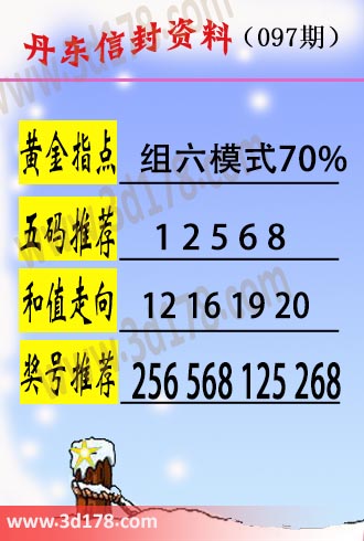 第2018097期3d丹东信封资料推荐: