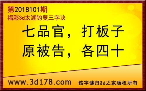 3d第18101期太湖字谜:七品官,打板子,原被告,各四十