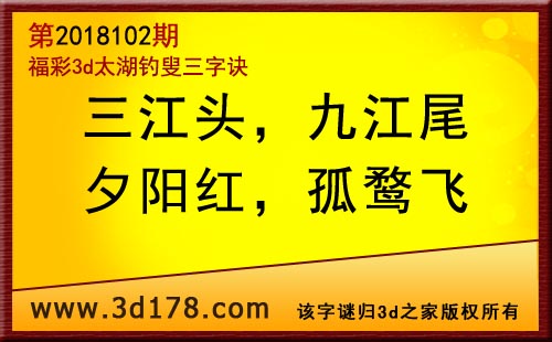 3d第18102期太湖字谜:三江头,九江尾,夕阳红,孤鹜飞