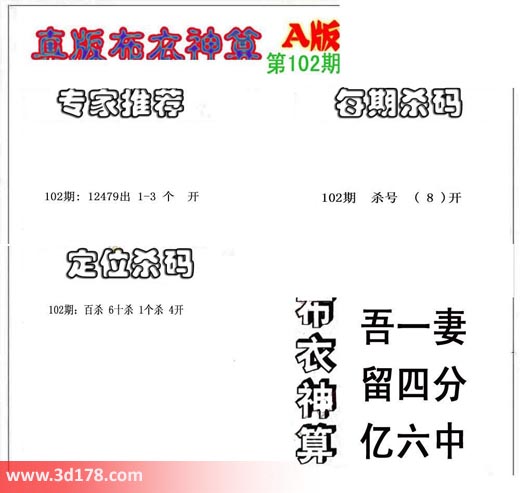 3d之家布衣图库之布衣神算图第2018102期详解: