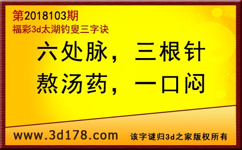 3d第18103期太湖字谜:六处脉,三根针,熬汤药,一口闷