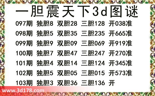 一胆震天下三胆图库由3d之家3d图库频道原创,仅供彩民参考,温馨提供。