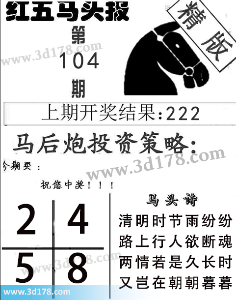 3d第2018104期红五马头报本期马头诗详解: