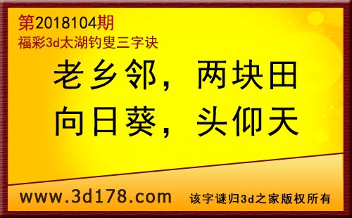 3d第18104期太湖字谜:老乡邻,两块田,向日葵,头仰天