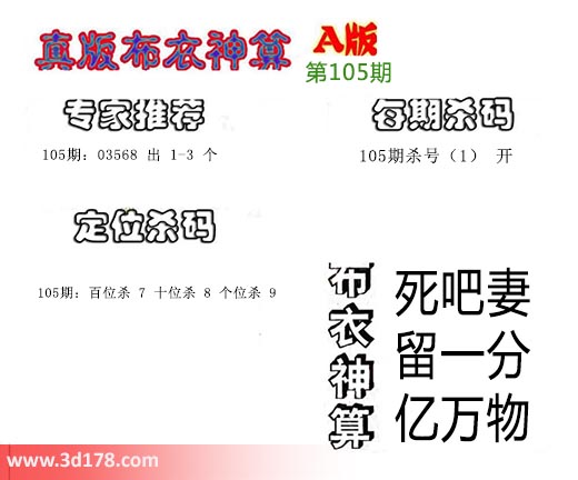3d布衣神算第105期定位杀码:
